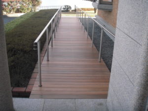 アスファルト舗装の広い駐車場&木製玄関ドアの塗装リフォー…