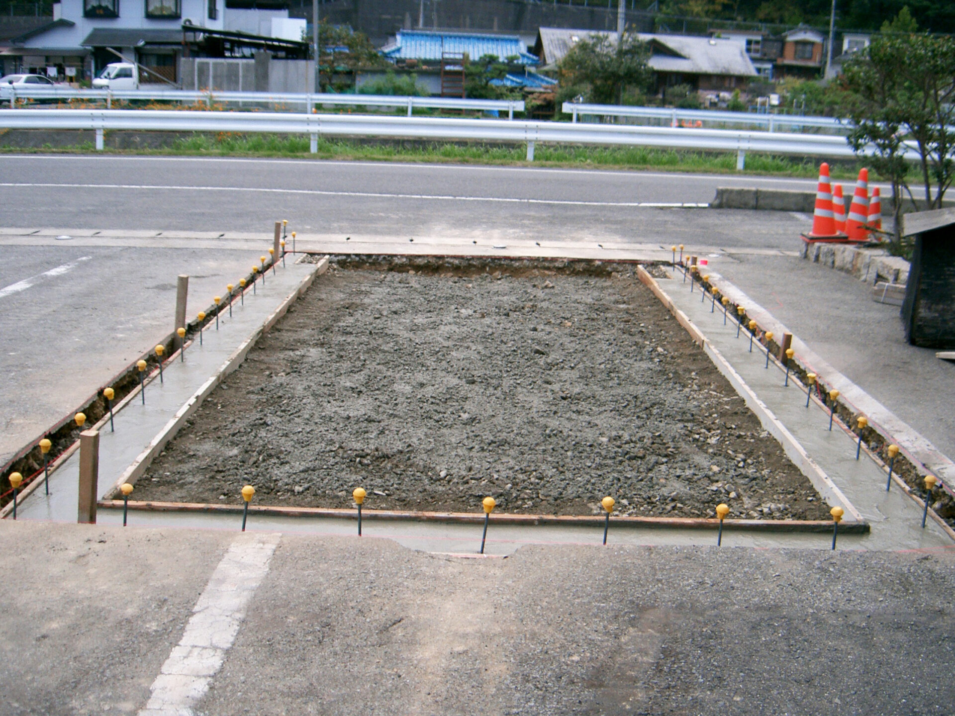 ガレージの基礎となるブロック施工と併せて土間コンクリート打ちを行いました。