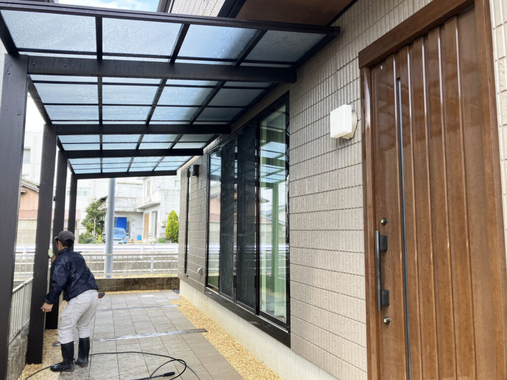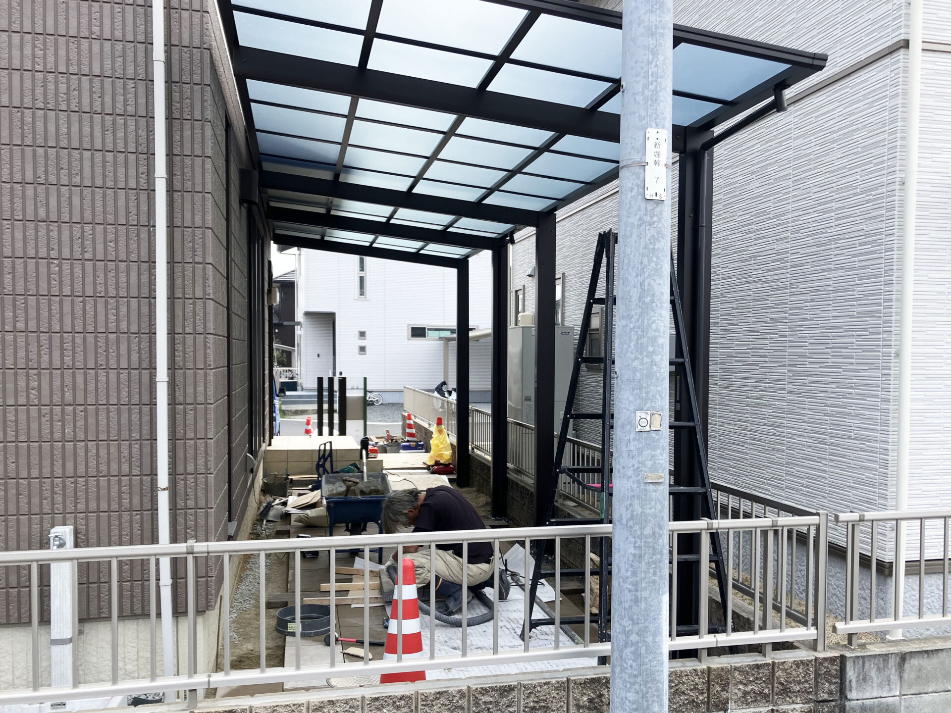 屋根+平板敷き舗装で快適な屋外空間に生まれ変わりました!