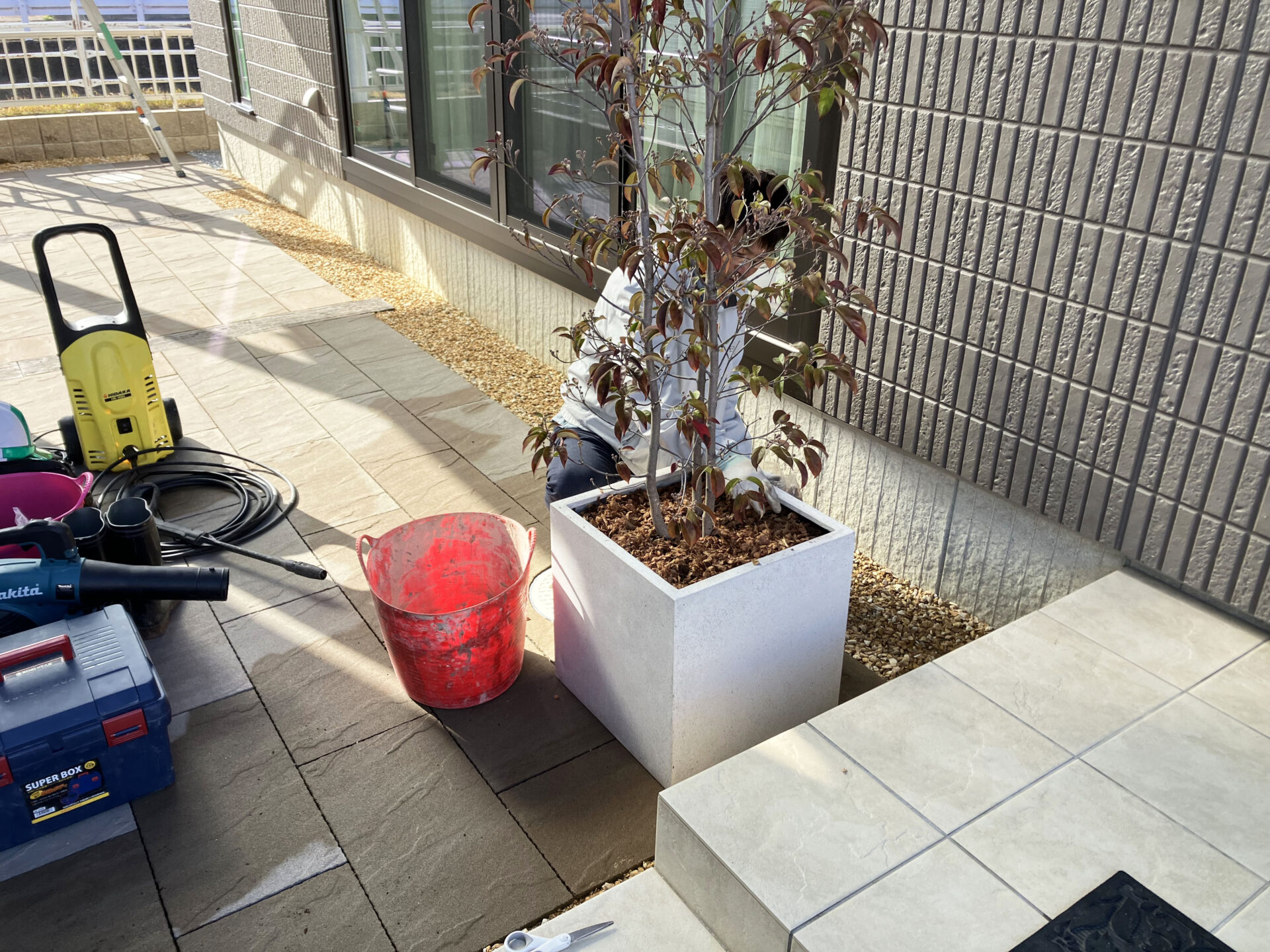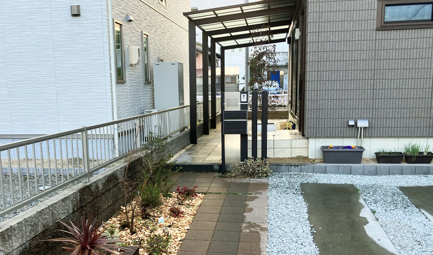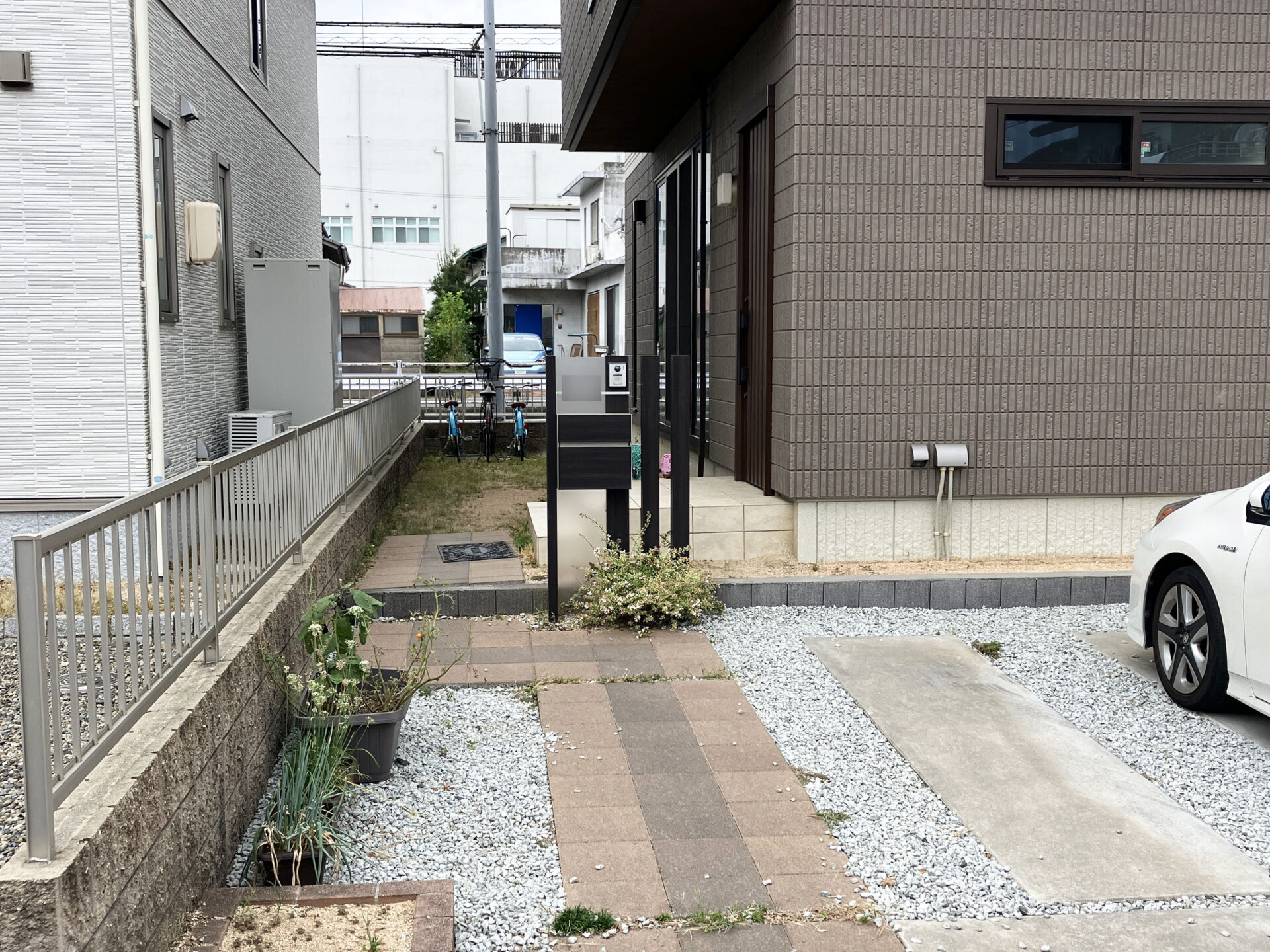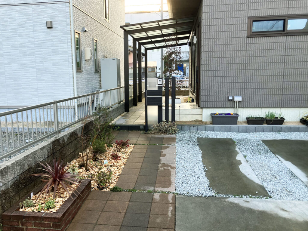 (※化粧砂利の下は、防草シートで防草工事をしています。)