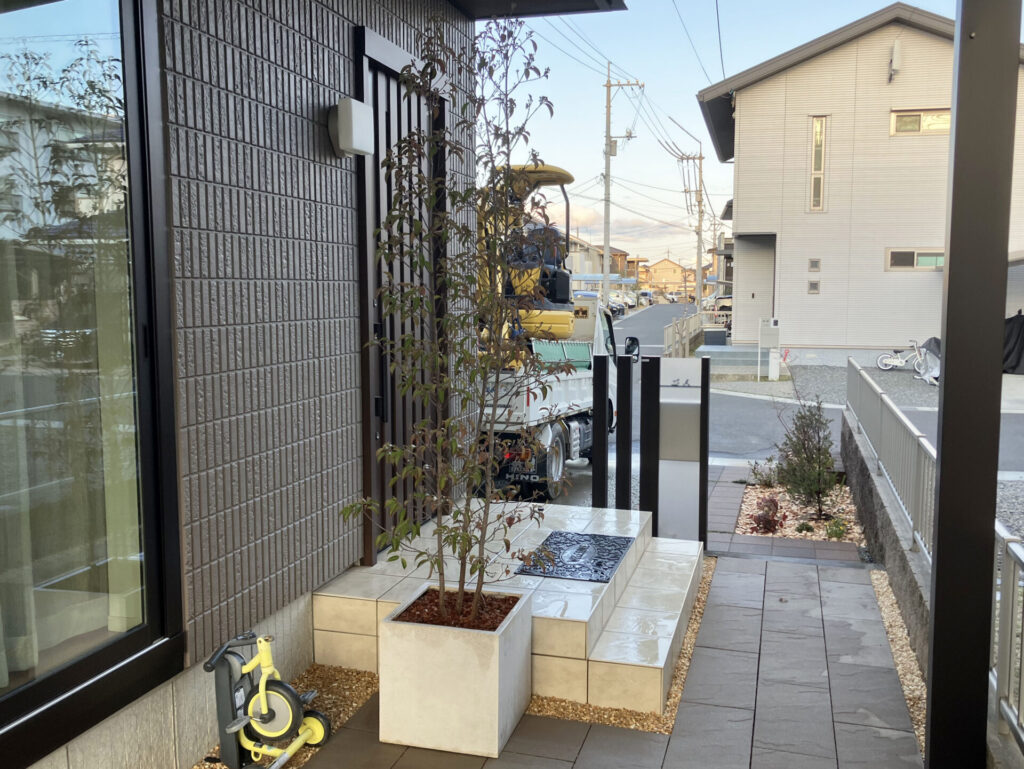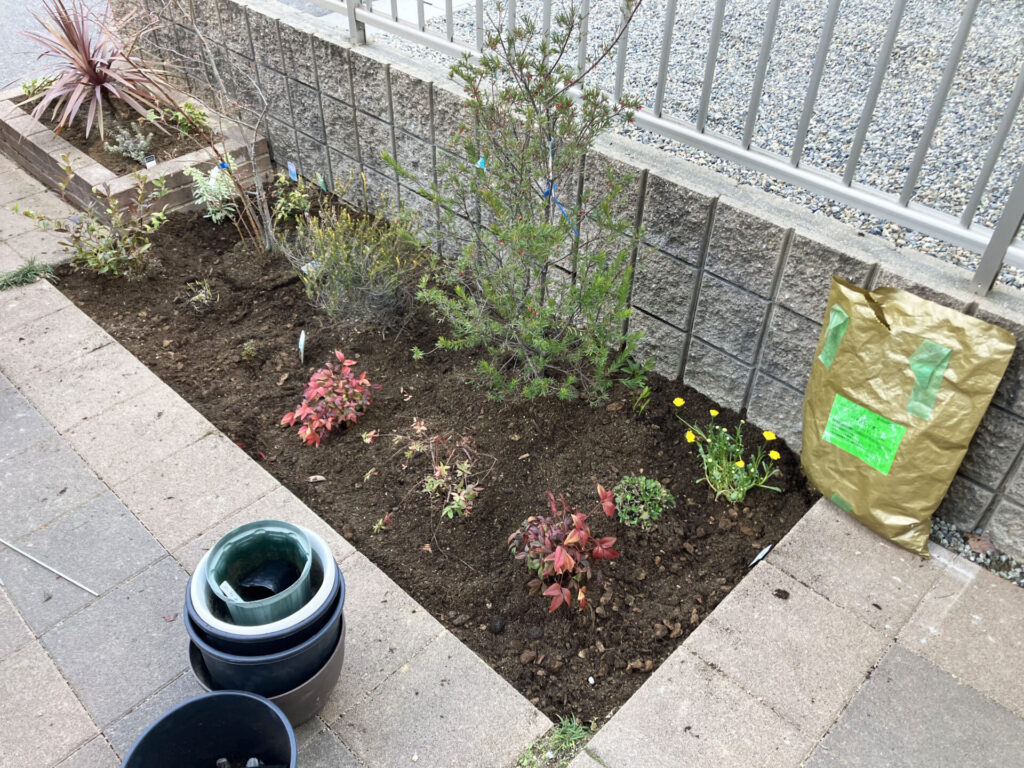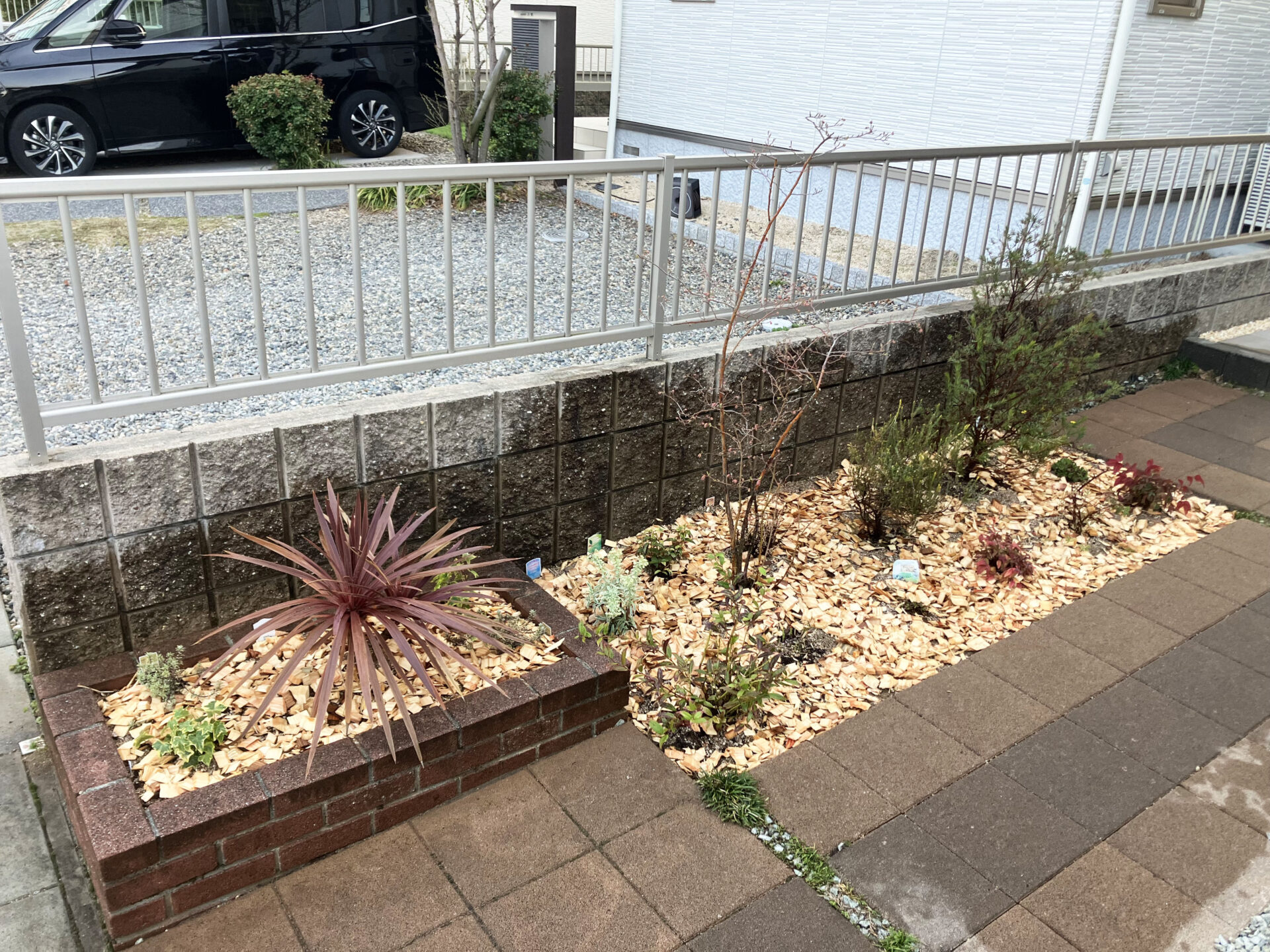 また、アプローチ沿いの花壇の植栽もリフォーム。