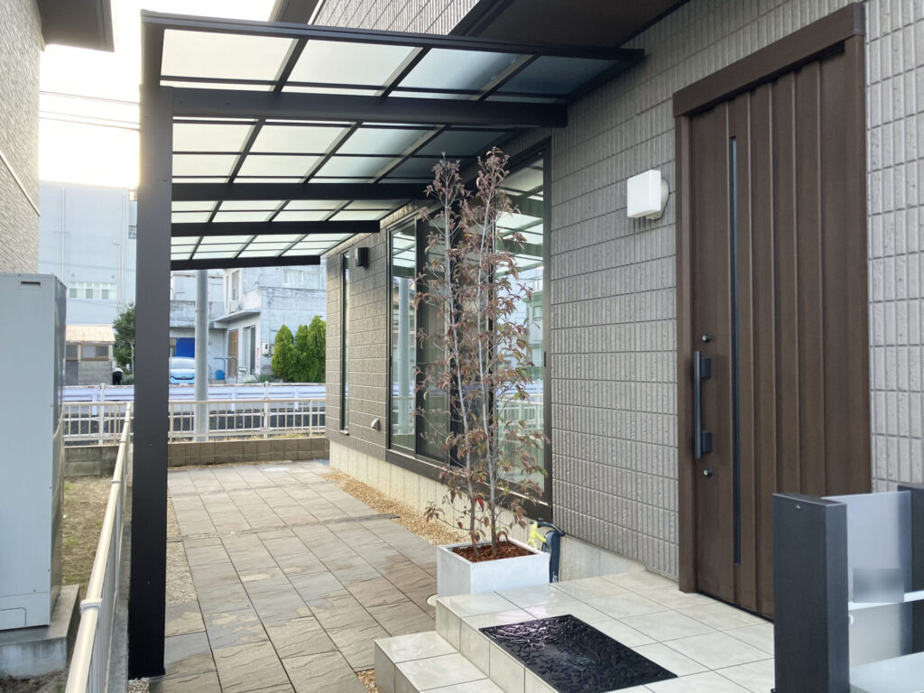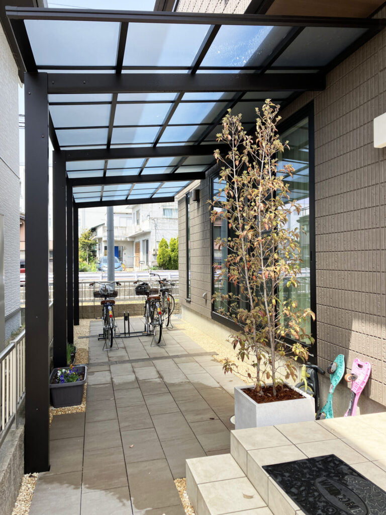 奥行があるお庭全体をカバーできるカーポートを採用した事で、