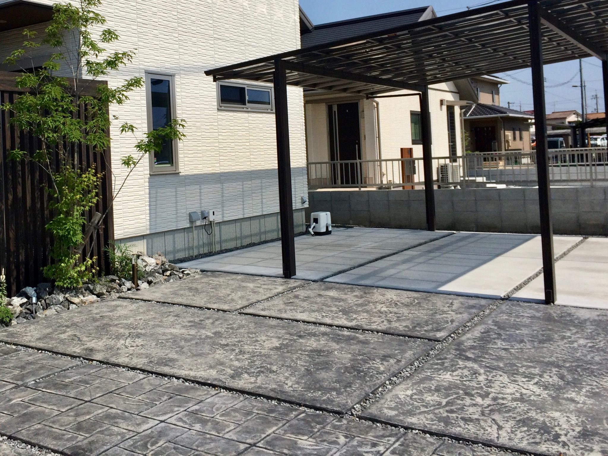 ビンテージウッドのスタンプコンクリート舗装でおしゃれに雑…