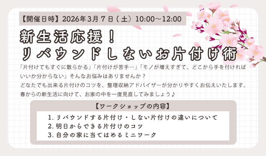 2026年3月のワークショップは、整理収納アドバイザーによる