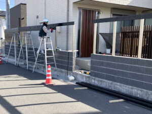 自然石風マットスタンプでナチュラルなパーキングガーデン …