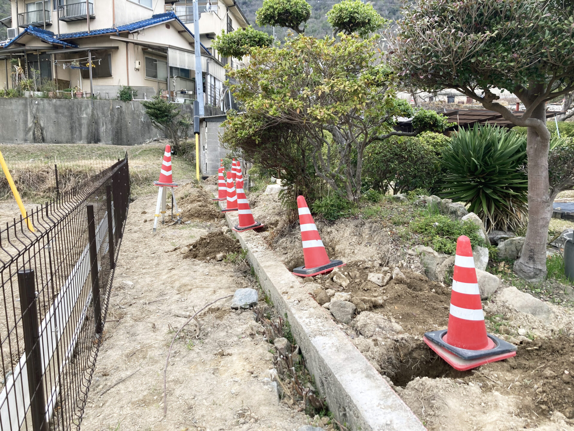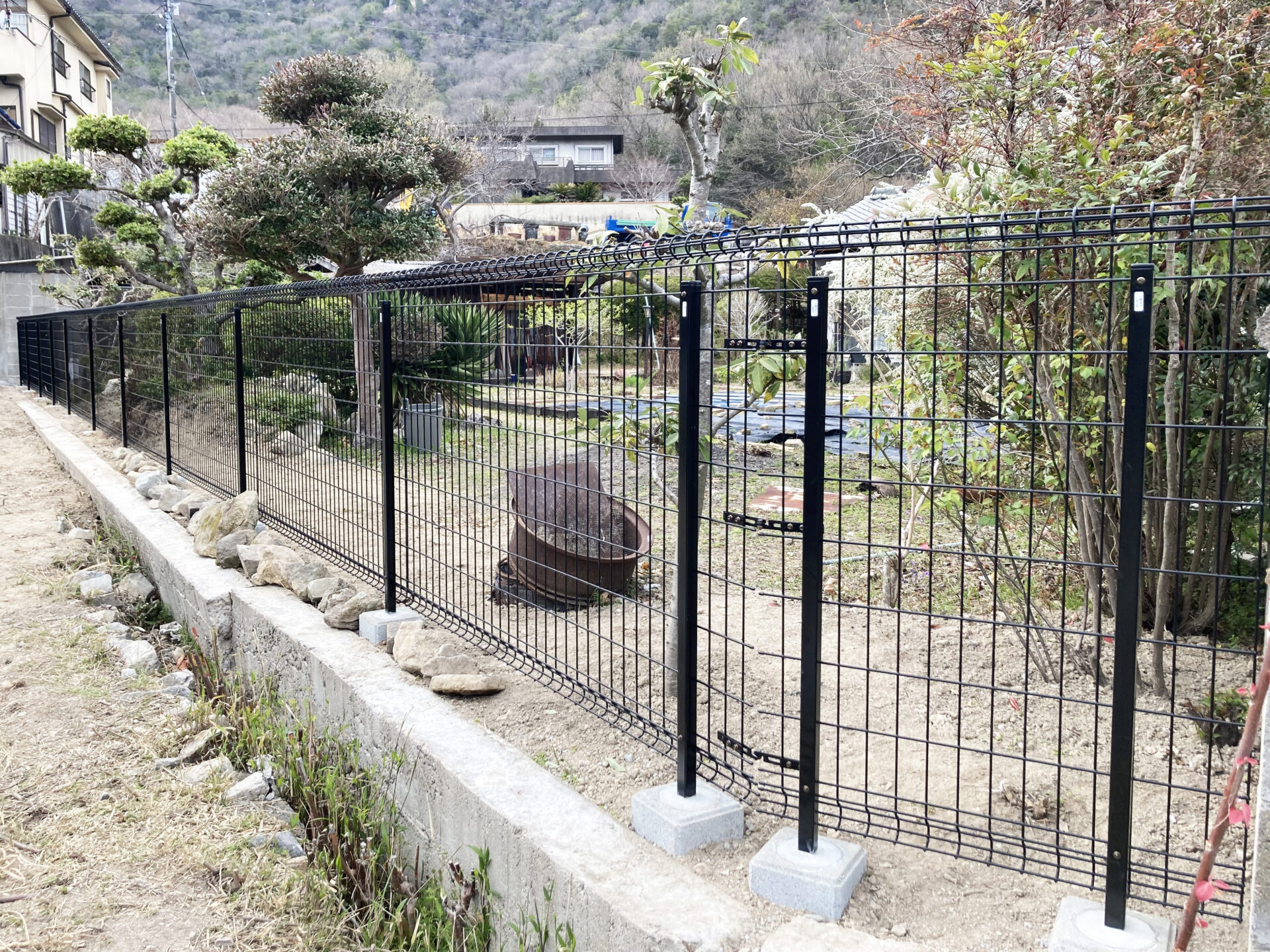 ブロック塀はメッシュフェンスへとリニューアル。