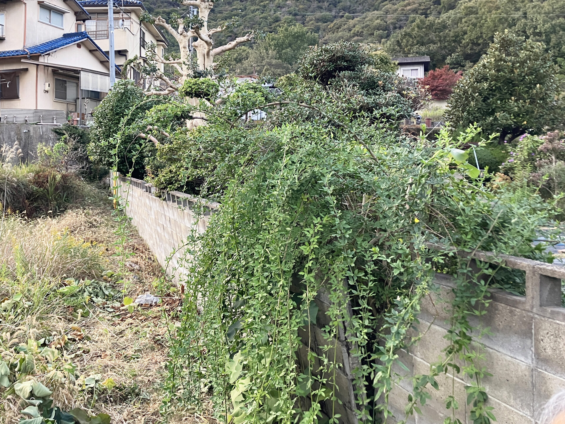 庭木が成長するにつれ、ブロック塀に圧力がかかり、