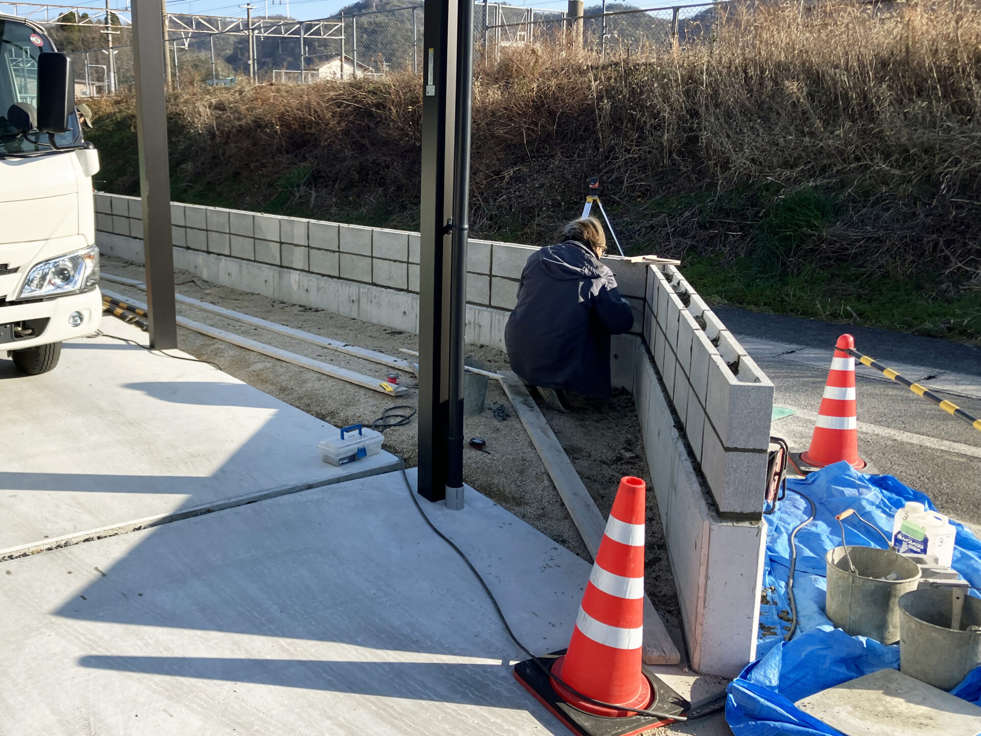 フェンスの基礎は、コンクリートブロック2段積み。