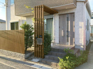 ディーズガーデンの物置と植栽を目隠しに活用したナチュラル…