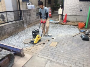 スタンプコンクリートと植栽で創る セミクローズドスタイル…