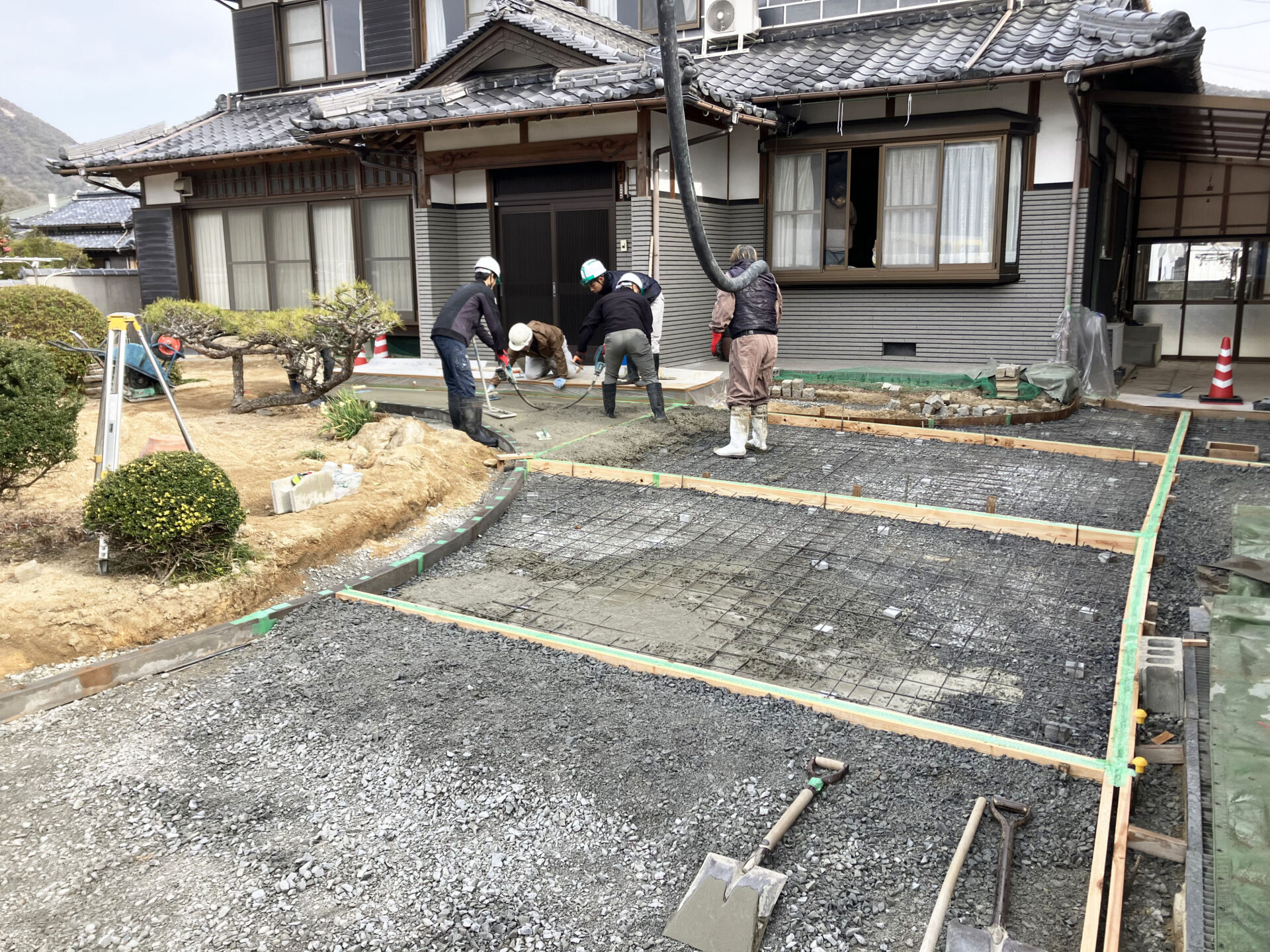 ひび割れが発生していた車庫前の土間コンクリートは、