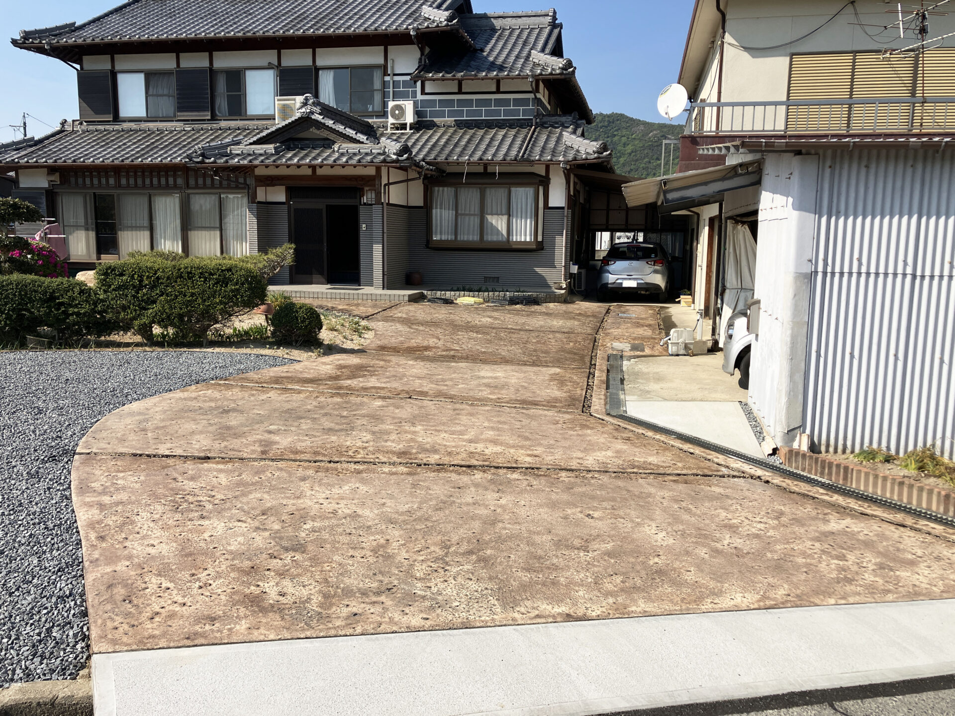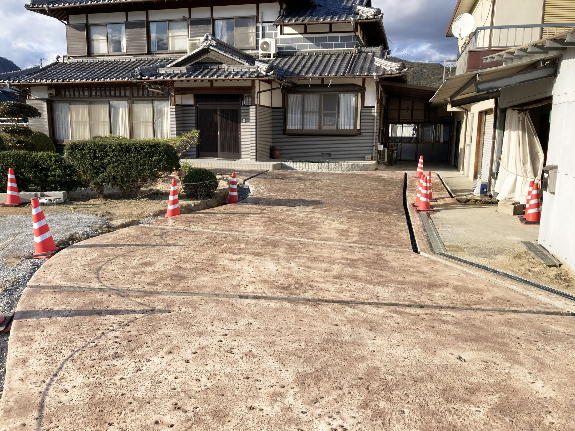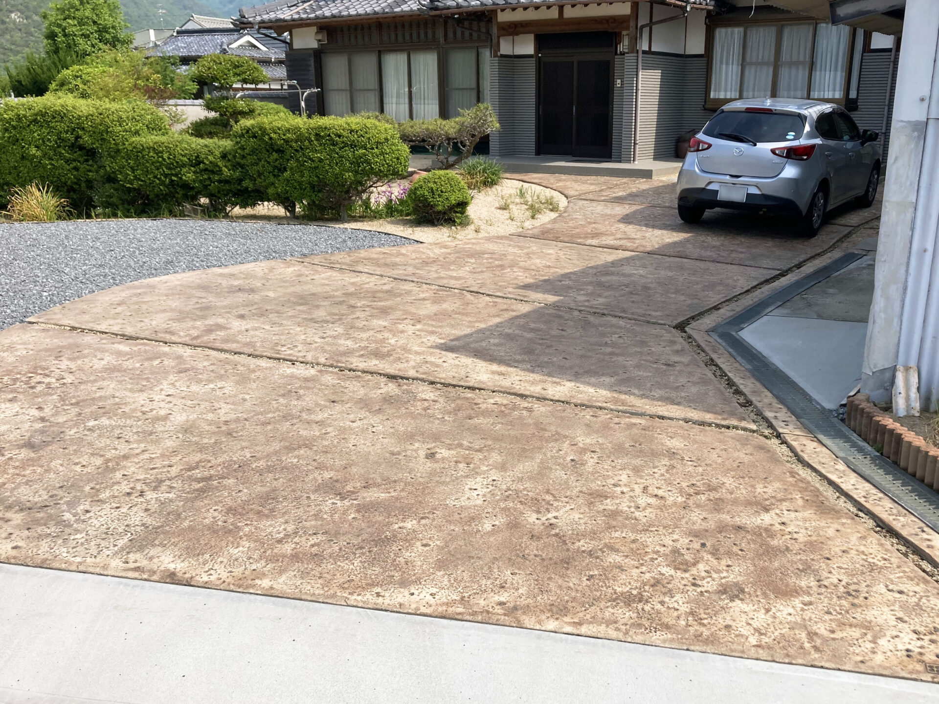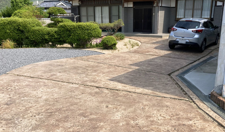 耐久性が高く、見た目もお洒落なスタンプコンクリートで舗装。