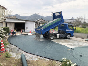インターロッキングブロックで犬走りを舗装した施工例 瀬戸…