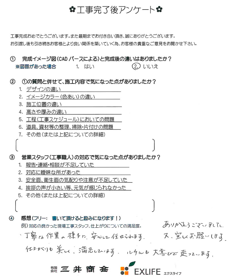 お客様の声「仕上がりも美しく、満足しています」玉野市M様