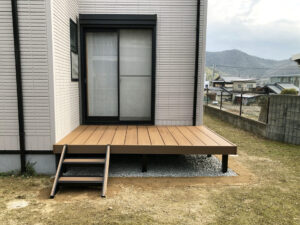 独立式テラスとエコアコールウッドを使用したウッドデッキ …